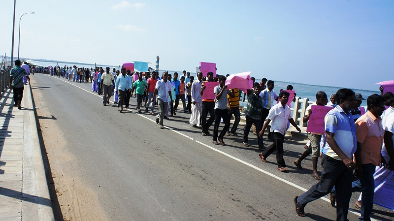 දෙමල ජාතික සන්ධානයේද සහය ඇතිව පැවැත්වූ මෙම උද්ඝෝෂණයේදී උද්ඝෝෂණ කරුවන් කියා සිටියේ ඉන්දීය අග්රාමාත්යවරයා සහ ශ්රී ලංකාවේ ජනාධිපතිවරයා අතර නවදිල්ලියේදී පැවැත්වෙන රාජ්යතන්ත්රික සාකච්ඡා වලදී ඉන්දීය ධීවරයින් ටෝලර් යාත්රා උපයෝගී කරගෙන උතුරු මුහුදු තීරයට බලහත්කාරයෙන් පැමිණ සිදුකරණ මත්ස්ය කොල්ලකෑමට එරෙහිව නව නීති සකස් කිරීමක් සිදුවීම අනිවාර්ය බවයි.