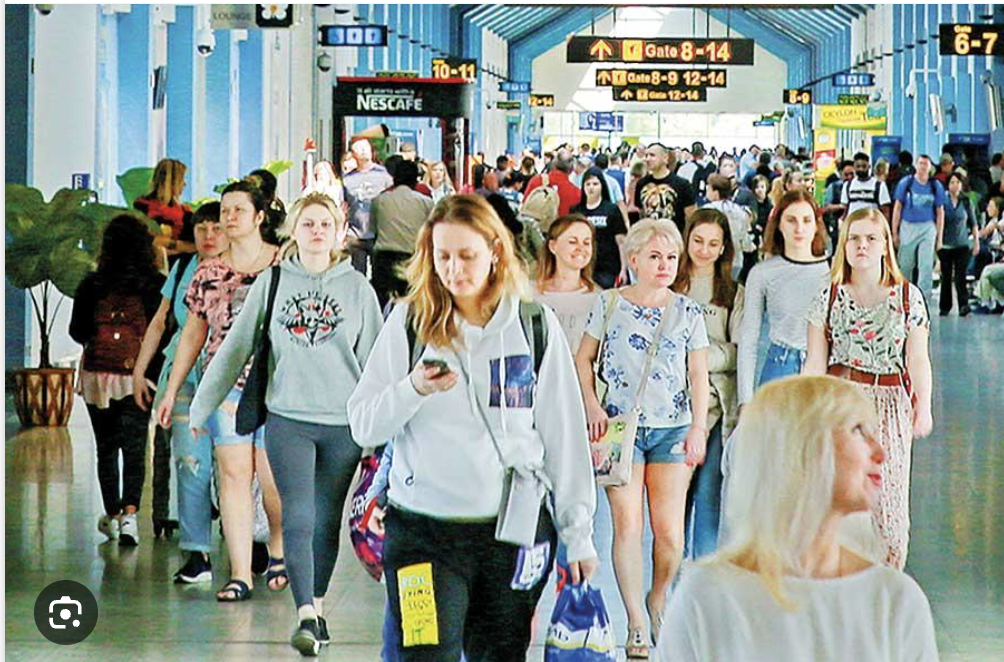 (ලංකා ඊ නිව්ස් -2025.මැයි.29, ප.ව.8.00) රුසියානුවෝ, පසුගිය අප්රියෙල් මාසය වන මෙරටට පැමිණෙන දෙවන විශාලතම සංචාරකයෝ වූහ. එහෙත් රුසියානුවෝ පැමිණෙන ප්රමාණයන් ක්රමයෙන් අඩුවන බව පසුගිය වසර කීපයේ දත්ත හා සසඳන විට තහවුරු වන්නේය. මෙය මාලිමා ආණ්ඩුව සංචාරක කර්මාන්තයෙන් මේ වසරේ දී උපයා ගැනීමට අපේක්ෂිත ඉලක්කවලට බරපතල බාධකයක් බව පෙනෙන්නේය.
