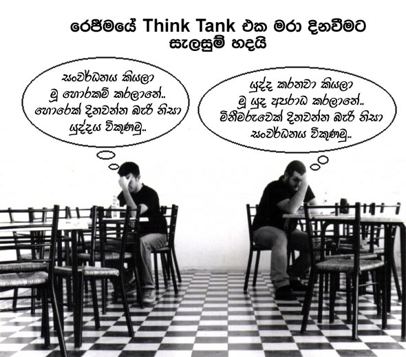 හීරළුවන්ගෙන්ද, කාර්යාලය අතුගෑමට එන කාන්තාවන්ට බලහත්කාරකම් කළවුන්ගෙන්ද මිට්ටන්ගෙන්ද, කට්ටයන්ගෙන්ද, කළු කෝට් කාරයන්ගෙන්ද සමන්විත වූ මරාගේ සිහින දකින තින්ක් ටෑන්ක් එකේ ඉදිරි සාකච්ඡාද හැකි ආකාරයට අප පාඨකයන් වෙන ගෙන එන්නෙමු.