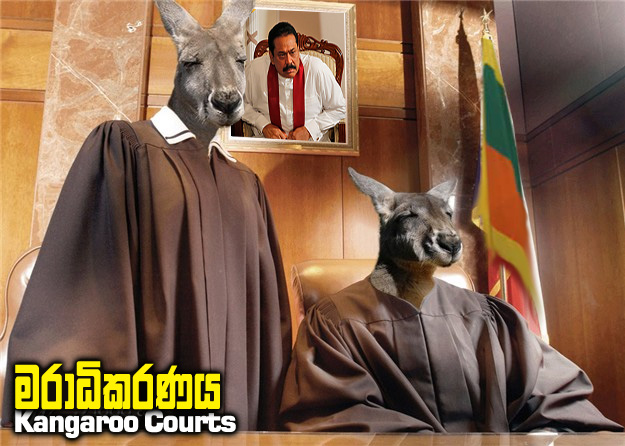 මේ විනිසුරු ගැන්සිය ක්රියා කරන්නේ සම්පූර්ණයෙන්ම රාජපක්ෂ රෙජීමයේ පිළිකන්නේ ලගින සුනඛයන් ලෙසය. රාජපක්ෂලා 'ඉජුහ්' කී විට කන් කඩා හලා, වලිගය වනමින්, දෙපතුල ලඟට එන්නෝ ය. 'දිවුහ්' කී විට වලිගය දෙපරහැන්දේ ගසා පස්ස නොබලා දුවන්නෝය. ඒ අතර අනෙක් අයට නොදැනෙන ලෙස ස්මාර්ට් විනිසුරුවරුන් ලෙසද පෙනී සිටින්නෝය. එබැවින් සත්ය හෙළි වූ විට සැලෙන්නෝය. නම් කටු ගා දමන්නැයි යදින්නේ එබැවිනි.