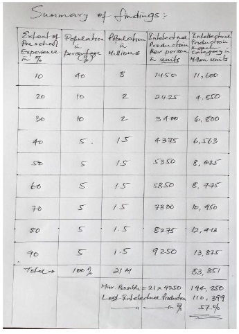 Similarly, 7 intermediate categories are shown in this graph. The information in this graph is extracted and processed through careful calculations and tabulated below for ease of understanding. Further calculations are done to make important and far-reaching conclusions. (graph 02)