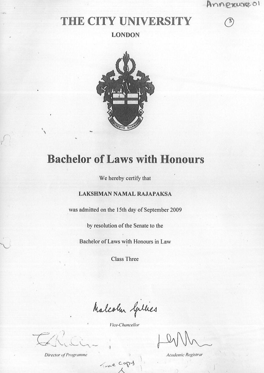 When Namal later applied for a master’s degree at the University of Sri Jayewardenepura, his file did include a degree certificate.