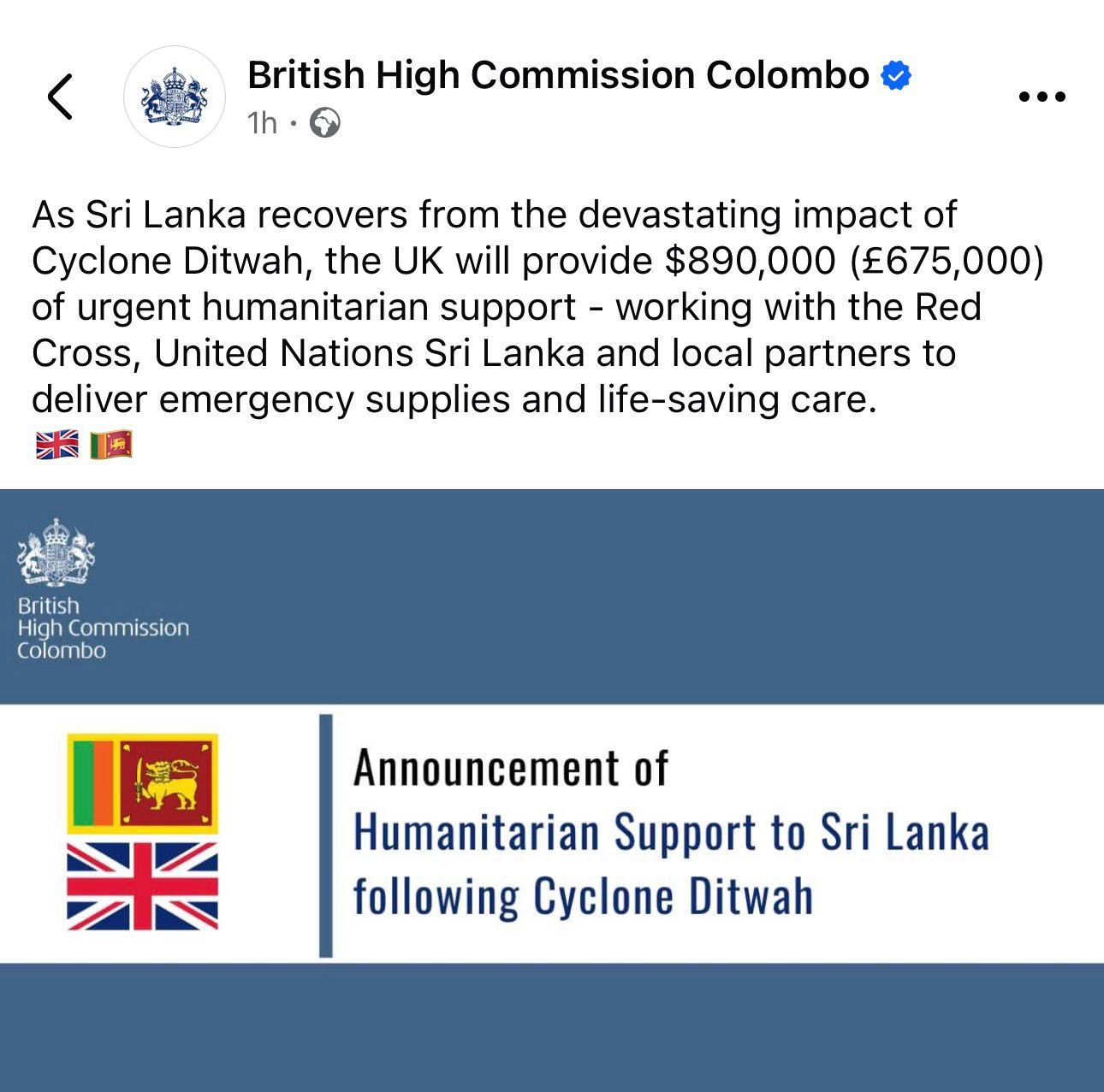 She confirmed that the United Kingdom would extend targeted humanitarian assistance to Sri Lanka, as well as to other regional partners battling severe flooding.UK Donated £675,000 for urgent Humanitarian support, more assitance will follow in future.