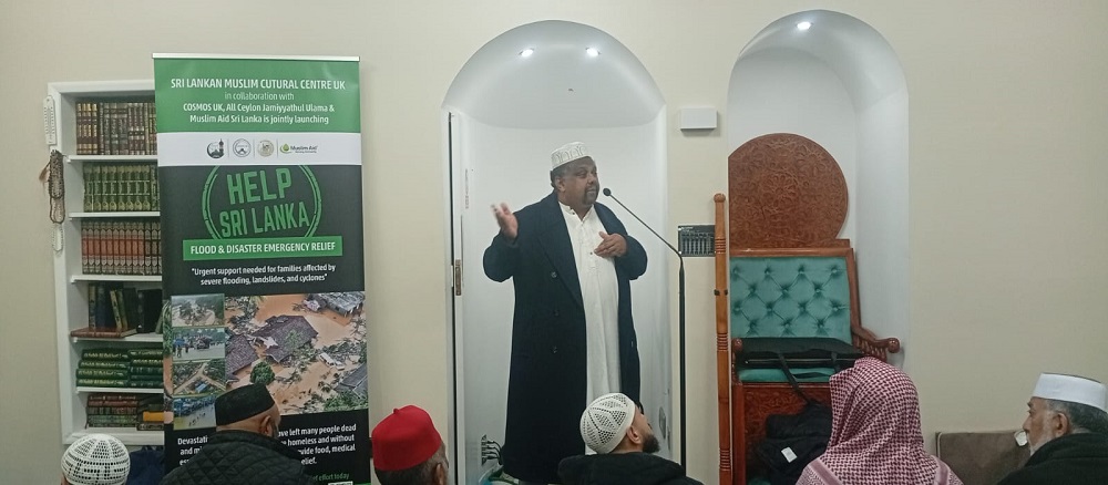 (Lanka-e-News -05.Dec.2025, 11.10 PM) The Sri Lanka Muslim Cultural Centre (SLMCC) Harrow, in collaboration with the Council of Sri Lankan Muslim Organisations (COSMOS UK), held special Duas after Jumm‘ah prayers on Friday, 5 December 2025, invoking blessings, protection, and relief for the victims of the devastating Ditwa Cyclone, widespread flooding, and landslides across Sri Lanka.