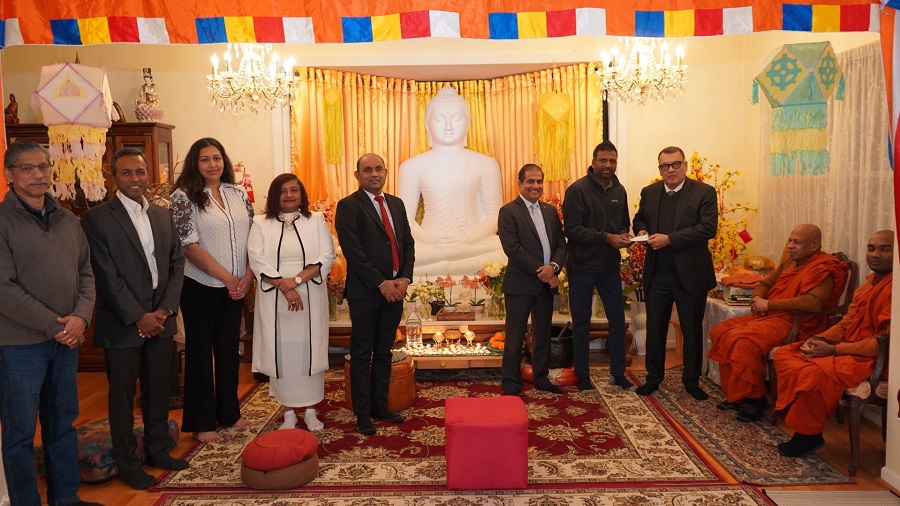 The donation was officially presented to Ambassador Mahinda Samarasinghe by Sampath Alexander, co-organizer of the event. Alexander represented the organizers, including Wasana Rajapakshe, Samadara Jayarathne, Shanaka Jayawardhana, Thilanka Nishad, as well as other members of the Sri Lankan community and donors who participated and contributed to the fundraising event. This presentation took place in the presence of Venerable Maharagama Dhammasiri Nayaka Thero at the Washington D.C. Buddhist Vihara.