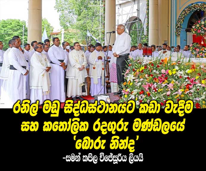 ජනවරමක් රහිත ජනාධිපති රනිල් වික්රමසිංහ විසින් මඩු සිද්ධස්ථානය කෙළෙසනු ලැබීම සම්බන්ධයෙන් අගරදගුරු මැල්කම් රන්ජිත් කාදිනල් හිමිපාණන් ගේ ස්ථාවරය එතුමා ඉකුත් ඉරිදා (අගෝස්තු 27) ප්රකාශ කළේය. එතුමා ඒ ගැන කතා කළේ රාගම, තේවත්ත බැසිලිකා සිද්ධස්ථානයේ දී පවත්වන ලද වාර්ෂික රෝගීන් ගේ දින මෙහෙයේ ධර්ම දේශනාවේදී ය. ඒ සිද්ධිය පමණක් නොව රට වර්තමානය මුහුණ දෙන දරුණු ගැටළු කිහිපයක් ගැනම එතුමා ඉතා ප්රබලව සිය මතය ප්රකාශ කළේය. මේ ලිපිය ලියන ලද්දේ කාදිනල් හිමියන් ගේ එම ප්රකාශයට පෙර ය.