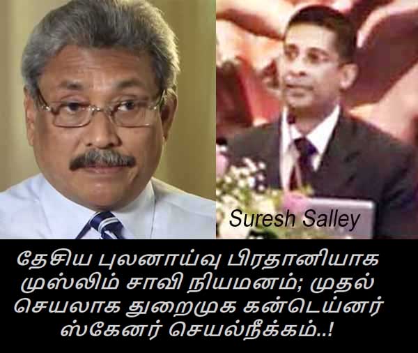 சுரேஷ் சாலியை தேசிய புலனாய்வு பிரதானியாக நியமிக்க எடுக்கப்பட்ட முடிவு பலத்த சந்தேகத்தை ஏற்படுத்தியுள்ளது. சுரேஷ் சாலி பதவியேற்ற பின்னர் துறைமுகத்தில் வெளிநாடுகளில் இருந்து இறக்குமதி செய்யப்படும் கன்டெய்னர்களை ஸ்கேன் செய்யும் இயந்திரம் செயலிழப்பு செய்யப்பட்டுள்ளது. இந்த ஸ்கேனர் இயந்திரத்தை நல்லாட்சி அரசாங்கமே அறிமுகப்படுத்தியது. கன்டேனரை செயலிழக்க செய்தமைக்கு அபூர்வமான காரணம் ஒன்றை முன்வைத்துள்ளனர். ஸ்கேனர் இயந்திரம் கொள்வனவு செய்யப்படும் போது முறைப்பாடுகள் இடம்பெற்றதாகவும் ஸ்கேன் செய்வதன் மூலம் காலதாமதம் ஏற்படுவதாக காரணம் கூறியே குறித்த ஸ்கேனர் இயந்திரம் செயலிழக்கச் செய்யப்பட்டுள்ளது. ஸ்கேன் செய்யாமல் நாட்டுக்குள் வெளிநாட்டிலிருந்து கன்டேய்னர்களை அனுமதிப்பது பாதுகாப்பை உறுதிபடுத்துமா? அல்லது பாதுகாப்பை இல்லாத செய்யுமா? என்பதை முஸ்லிம் நபரொருவரை தேசிய புலனாய்வு பிரிவு பிரதானியாக நியமித்த அமெரிக்க பிரஜையே கூற வேண்டும். தேசிய பாதுகாப்பிற்கு அச்சுறுத்தலாக இருக்கிறார்கள் என்று கூறப்பட்ட முஸ்லிம் அடிப்படைவாதிகள் தரப்பிலிருந்து ஒருவரை தேசிய புலனாய்வு பணிப்பாளராக நியமித்தமை தொடர்பில் ஜனாதிபதி நிச்சயம் கருத்து தெரிவிக்க வேண்டும். அப்படி இல்லையேல் 'தெங் செப்பத' (இப்போது சுகமா) என்று மக்களை நோக்கி கேள்வி கேட்க நேரிடும்.