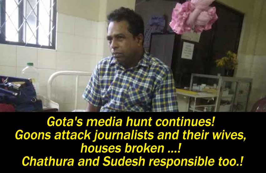 ஊடகவியலாளர்கள் தற்போது கழுத்தைப் பிடிக்க வேண்டிய இருவர் உள்ளனர். ஊடகவியலாளர் சத்துர அல்விஸ் மற்றையவர் ஊடகவியலாளர் சுதேஷ் ஆகிய மோசடி ஊடகவியலாளர்கள் ஆவர். உண்மையை பொய்யாக்கி காலை தொடக்கம் இரவு வரை மக்கள் மத்தியில் பொய்யான பிரச்சாரங்களை செய்து கோட்டாபய ராஜபக்சவை ஆட்சி அதிகாரத்திற்கு கொண்டு வந்த இவர்கள் தற்போது ஊடகவியலாளர்கள் எதிர் கொண்டு இருக்கின்ற அச்சுறுத்தல்கள் தாக்குதல்களுக்கு நிச்சயமாக பொறுப்புக்கூற வேண்டும்.
