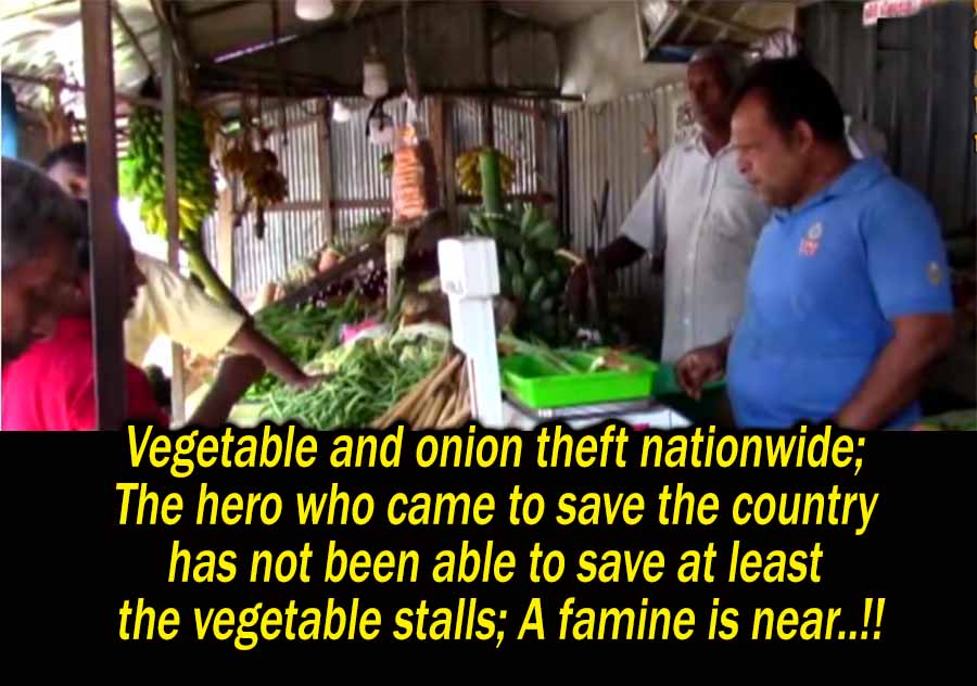 (லங்கா ஈ நியூஸ் 2020 ஜனவரி 21 முற்பகல் 11.50) கடந்த 16 ஆம் திகதி ஆரம்பிக்கப்பட்ட மரக்கறி விற்பனை நிலையத்தை உடைத்து மரக்கறி மற்றும் பெரிய வெங்காயம் போன்றவற்றை திருடிய நடவடிக்கை தற்போது நாடு முழுவதும் சில பிரதேசங்களுக்கு பரவியுள்ளது. கடந்த 19ஆம் திகதி மற்றும் 18 ஆம் திகதிகளில் அம்பாந்தோட்டை, கேகாலை மற்றும் கம்பஹா ஆகிய பிரதேசங்களில் மரக்கறி மற்றும் பெரிய வெங்காயம் ஆகியன திருடப்பட்டு உள்ளதுடன் இது குறித்து பிரதேச பொலிஸ் நிலையங்களில் முறைப்பாடு செய்யப்பட்டுள்ளது. ஆனால் ஜனாதிபதி நந்தசேனவின் கட்டளையின் பேரில் போலீசார் இந்த சம்பவங்களை ஊடகங்களுக்கு வெளிப்படுத்துவதற்கு தயங்கியுள்ளனர்.