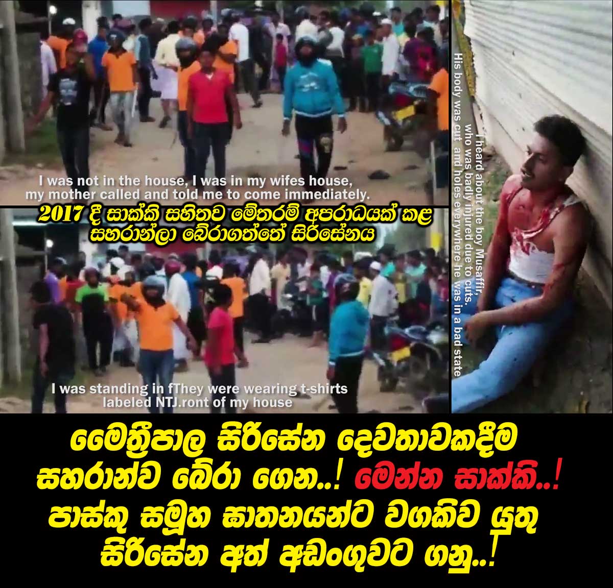 2018 ஆம் ஆண்டு மைத்ரிபால சிறிசேன சஹரான் குழுவினரை காப்பாற்றிய விதம் நாட்டில் அனைவருக்கும் நன்கு தெரிந்ததே. சஹரானை கைது செய்யவென நீதிமன்றில் பகிரங்க பிடியாணை பெற்று அதற்கு தயார் நிலையில் இருந்த பயங்கரவாத விசாரணைப் பிரிவின் பணிப்பாளர் பிரதி பொலிஸ் மா அதிபர் நாலக்க சில்வா மீது போலி குற்றசாட்டு சுமத்தி அவர் கைது செய்யப்பட்டு விளக்கமறியலில் வைக்கப்பட்டார். இதற்கான அனைத்து சதி வேலைகளையும் மைத்திரிபால சிறிசேனவே மேற்கொண்டார். கோட்டாபய ராஜபக்சவையும் தன்னையும் கொலை செய்ய சதி நடப்பதாக தன்னிடம் சம்பளம் பெற்று வேலை செய்யும் நாமல் குமார என்ற பொய்க்காரனை ஏவி விட்டு ஊடகங்களில் செய்தி வெளியிட்டு நாலக்க டி சில்வாவை கைது செய்து சிறை வைத்தது மைத்திரிபால சிறிசேனவே. இதன் மூலம் சஹ்ரான் குழுவினர் கைது செய்யப்படுவதில் இருந்து காப்பாற்றப்பட்டார். இது ஜனாதிபதி மைத்திரிபால சிறிசேன தெரிந்துகொண்டே செய்த சக்தியாகும்.