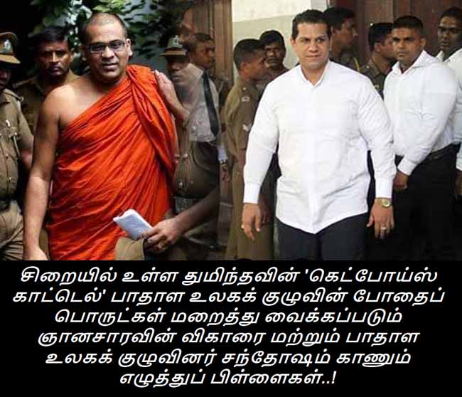 (லங்கா ஈ நியூஸ் 2020 பெப்ரவரி 17 பிற்பகல் 11.30) அண்மையில் லங்கா ஈ நியூஸ் இணையத்தளம் வெளியிட்ட 'ஜனாதிபதி நந்தசேனவின் கண்ணுக்குப் படாத குடு துமிந்த மற்றும் தெமட்டகொட சமிந்த ஆகியோர் வழிநடத்தும் 'கெட்போய் காட்டெல்' பாதாள உலகம்..!' என்ற தலைப்பின் கீழான ஜெயிலர் பொட்டாவின் செய்தியை அடுத்து சிறைச்சாலையில் போதைப்பொருள் வியாபாரம் செய்யும் குழு மற்றும் அதற்கு உந்துதல் அளிக்கும் இலங்கையின் ஊடக மாபியாக்கள் கலக்கத்தில் உள்ளன.