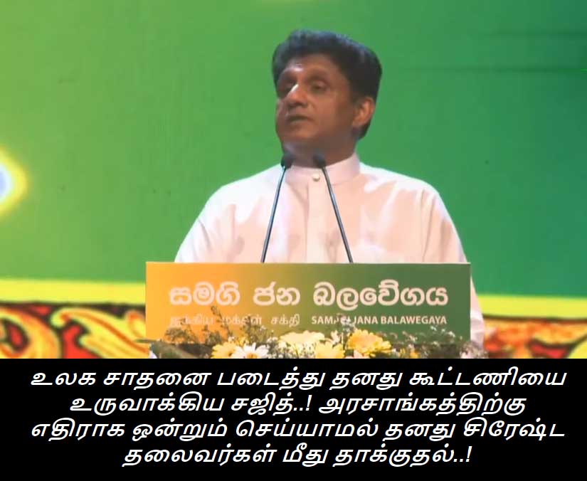 இந்த அங்குரார்ப்பண நிகழ்வில் பிரதான உரையை ஆற்றிய சஜித் பிரேமதாசவின் கீழ்த்தரமான உரை எதிர்க்கட்சியினரை புதுமையில் ஆழ்த்தியது. காரணம் எதிர்க்கட்சித் தலைவராக இருந்து அரசாங்கத்திற்கு எதிராக எவ்வித விமர்சனங்களையும் முன்வைக்காமல் தனது கட்சியின் சிரேஷ்ட உறுப்பினர்கள் மீது மூன்று சந்தர்ப்பங்களில் அவதூறு பேசி உள்ளார். இந்த உரையை பார்க்கும் போது உண்மையில் சஜித் பிரேமதாச உருவாக்குவது ராஜபக்சக்களின் கைக்கூலியாக செயல்படக் கூடிய கூட்டணியா என்ற சந்தேகம் வலுக்கிறது. அரசாங்கம் உருவாகி 100 நாட்களின் பின்னரே கூட்டணி அமைக்கப்பட்டுள்ளது. இயலாமை மற்றும் நிர்வாகத் திறமை இன்மையை இந்த அரசாங்கம் காட்டி உள்ள போதும் அரசாங்கத்திற்கு எதிராக ஏதேனும் விமர்சனங்களை முன்வைத்து இருக்க வேண்டும் என்ற போதும் அபூர்வத் தலைவரான சஜித் பிரேமதாச அதனை செய்யவில்லை.