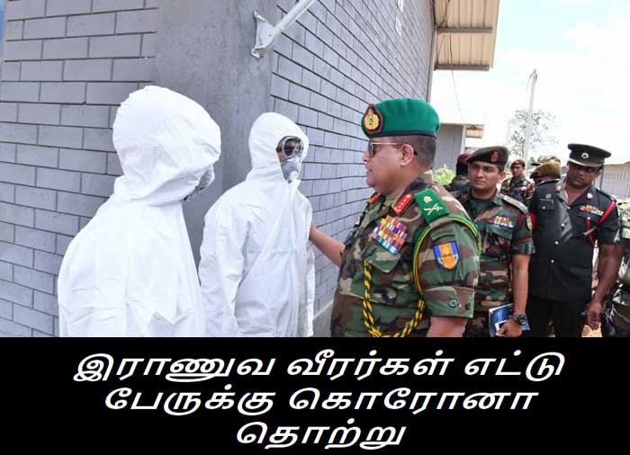 (லங்கா ஈ நியூஸ் - 2020 மார்ச் 16 பிற்பகல் 08.10) இராணுவ அதிகாரிகள் இருவர் மற்றும் இராணுவ சிப்பாய்கள் ஆறு பேர் அடங்களாக எட்டு பேருக்கு கொரோனா வைரஸ் தொற்று ஏற்பட்டுள்ளதாக இராணுவ தகவல்கள் தெரிவிக்கின்றன.