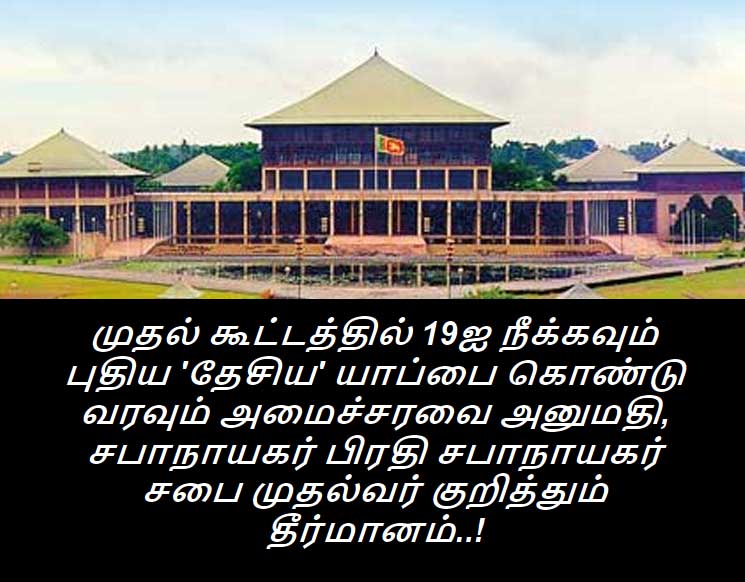 (லங்கா ஈ நியூஸ் 2020 ஓகஸ்ட் 20 அதிகாலை 01.30) கடந்த நல்லாட்சி அரசாங்கம் நாட்டு மக்களுக்கு வழங்கிய ஒரே ஒரு வாக்குறுதியான நிறைவேற்று அதிகாரமுடைய ஜனாதிபதி முறையை ஒழிப்பது மற்றும் புதிய தேர்தல் முறையை அறிமுகப்படுத்துவது போன்றவற்றை செயல்படுத்துவதற்கு சுமார் 4 வருடங்களாக தட்டுத் தடுமாறிக் கொண்டிருந்த நிலையில் அண்மையில் நடைபெற்ற பாராளுமன்றத் தேர்தலில் மூன்றில் இரண்டு பெரும்பான்மையைப் பெற்ற ராஜபக்ச அரசாங்கம் நேற்று (19) நடைபெற்ற முதலாவது அமைச்சரவைக் கூட்டத்தின் போது 19 ஆவது திருத்தச் சட்டத்தை நீக்கவும் 20ஆவது திருத்தச் சட்டம் என 'தேசிய' அரசியல் யாப்பை உருவாக்கவும் அங்கீகாரம் வழங்கியுள்ளது.