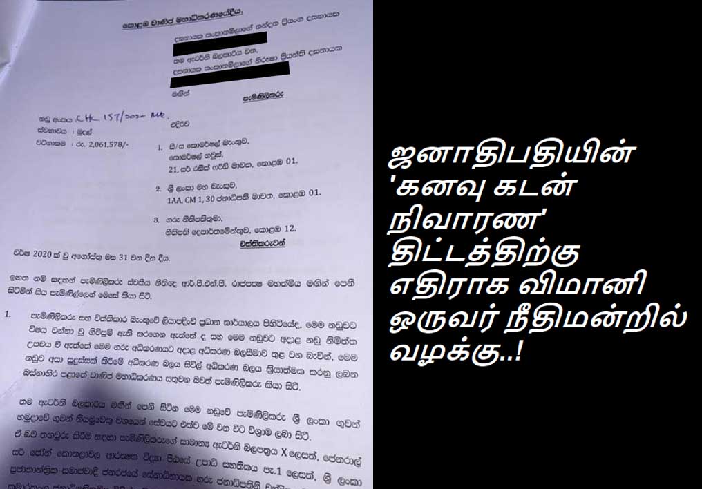 குறித்த மனுவின் பிரதிவாதிகளாக வரையறுக்கப்பட்ட கொமர்ஷல் வங்கி, இலங்கை மத்திய வங்கி மற்றும் சட்டமா அதிபர் ஆகியோர் பெயரிடப்பட்டுள்ளனர். வியட்நாமில் விமானியாக கடமையாற்றும் வெயாங்கொட மாரபொல பிரதேசத்தைச் சேர்ந்த நந்தன பிரியங்க தசநாயக்க என்ற நபர் குறித்த மனுவை தாக்கல் செய்துள்ளார்.