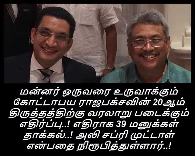 (லங்கா ஈ நியூஸ் 2020 செப்டம்பர் 30 பிற்பகல் 2.45) ஜாதகம் இல்லாமல் முன்வைக்கப்பட்டு அதனை அரசாங்கத்திற்கு உள்ளேயே விமர்சனத்திற்கு உட்படுத்தப்படும் போது ஜனாதிபதி கோட்டாபய ராஜபக்ச முன்வந்து பொறுப்பை ஏற்றுக் கொண்ட இலங்கை வரலாற்றில் நாட்டு மக்கள் பயன்படுத்தும் இறைமையை பறித்தெடுக்க கூடியதான மன்னர் ஒருவரை உருவாக்கும் இருபதாவது திருத்தச் சட்டத்திற்கு எதிராக வரலாறு படைக்கும் வகையில் நீதிமன்றத்தில் 39 மனுக்கள் எதிராக தாக்கல் செய்யப்பட்டுள்ளன.