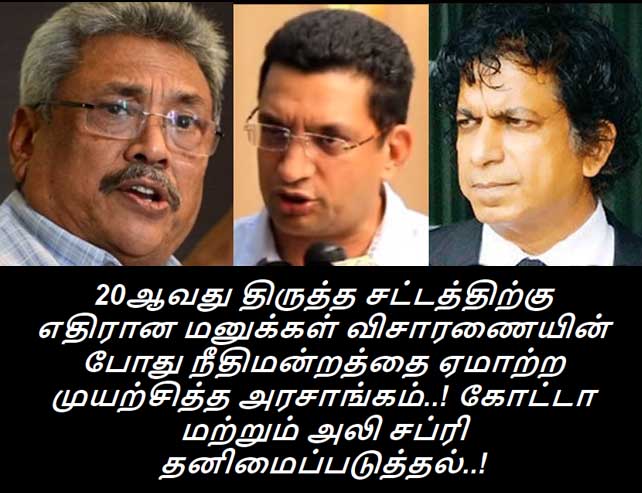 மேலும் இருபதாவது சட்ட மூலத்தை நிறைவேற்றிக் கொள்ள மக்கள் விருப்பம் பெறவும் பின் நிற்கப் போவதில்லை என தெரிவித்த நீதி அமைச்சர் அலி சபரி தற்போது அதில் மாற்றம் கொண்டு வர முயற்சிக்கின்றமை மக்கள் விருப்பத்திற்கு செல்ல அஞ்சியா என கேள்வி எழுப்பப்படுகிறது.