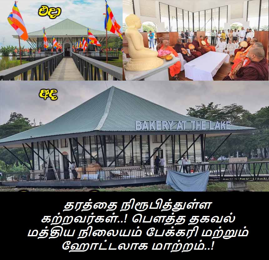 (லங்கா ஈ நியூஸ் 2020 ஒக்டோபர் 17 முற்பகல் 9.40) தற்போதைய அரசாங்கத்தில் கல்வி கற்றவர்கள் என கூறிக் கொள்ளும் நபர்கள் தங்கள் தரம் என்ன என்பதை காட்டும் வகையில் உலகிற்கு அதனை உரத்து சொல்லும் அளவிற்கு பௌத்த தகவல் மத்திய நிலையம் மற்றும் அமைதியாக இருந்து வாசிக்கக் கூடிய நூலகம் என்பவற்றை பேக்கரி மற்றும் ஹோட்டலாக மாற்றி அமைத்துள்ளனர்.