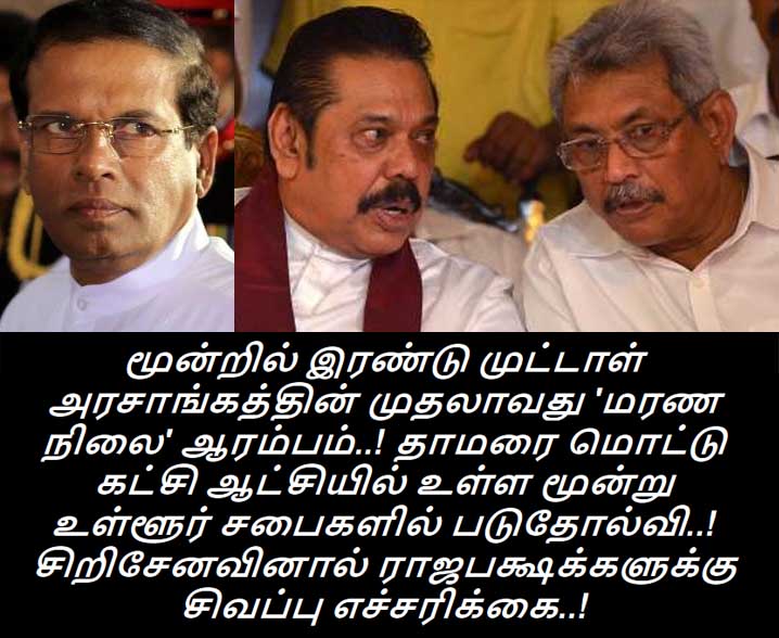 இந்த மூன்று உள்ளூராட்சி சபைகளிலும் அரசாங்கத்துடன் பங்காளி கட்சியாக இருந்து ஆட்சி அமைத்துள்ள மைத்திரிபால சிறிசேன தலைமையிலான ஶ்ரீலங்கா சுதந்திர கட்சி எதிராக வாக்களித்துள்ளமை விசேட அம்சமாகும். இதனை சிறிசேன ராஜபக்ஷக்களுக்கு விடுத்துள்ள சிவப்பு எச்சரிக்கையாக கருதினால் அதில் தவறு இல்லை.
