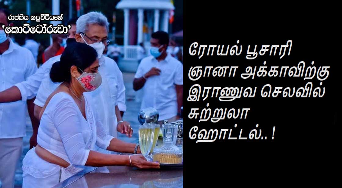இந்த ரோயல் பூசாரி ஞானா அக்கா தற்போது அநுராதபுரத்தில் சுற்றுலா ஹோட்டல் ஒன்றை அமைத்து வருகிறார். இதில் உள்ள புதுமையான விடயம் என்னவென்றால் குறித்த ஹோட்டல் நிர்மாண பணிகளை இலங்கை இராணுவ வீரர்களே மேற்கொண்டு வருகின்றனர். முப்படைகளின் தளபதியான ஜனாதிபதி கோட்டாபய ராஜபக்ஷவின் பணிப்பில் இராணுவத் தளபதி லெப்டினன் ஜெனரல் சவேந்திர சில்வாவின் வழிகாட்டலில் இரண்டு இராணுவ பிரிவினர் ஞானா பூசாரி அக்காவின் ஹோட்டல் நிர்மாண பணிகளில் ஈடுபட்டு வருகின்றனர். அனைத்து வளங்கள் மற்றும் உழைப்புகளை இராணுவத்தினர் முதலீடு செய்துள்ளனர். அப்படி இன்றேல் நாட்டு மக்களின் வரிப் பணம் என்றும் கூறலாம். இந்த ஹோட்டல் நிர்மாண பணிகள் தாமதம் அடைந்துள்ளதால் ஹோட்டல் உரிமையாளரான ஞானா பூசாரி அக்கா தனது மருமகன் சவேந்திர சில்வாவிற்கு தொலைபேசி ஊடாக முறைப்பாடு செய்துள்ளார். அதன்போது ஹோட்டல் நிர்மாண பணிகளுக்கு பொறுப்பாக இருக்கும் இராணுவ வீரர்களை சவேந்திர சில்வா அடுக்கடுக்கான கெட்ட வார்த்தைகளால் திட்டுவார்.