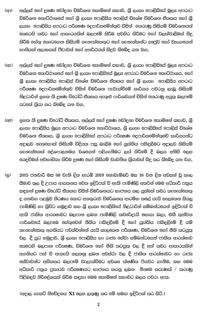 எனினும் வேலைகளை குழப்பிக் கொள்ளும் ஜனாதிபதி கோட்டாபய ராஜபக்ஷ நியமித்த முதலாவது விசாரணை ஆணைக்குழு பரிந்துரை செய்திருப்பது போல எதிர்கட்சி அரசியல்வாதிகளின் பிரஜா உரிமையை இரத்து செய்ய கோரும் அதிகாரம் அந்த ஆணைக்குழுவிற்கு இல்லை. அதனால் இரண்டாவது ஆணைக்குழுவை அவர் நியமித்துள்ளார். இவ்வாறான பரிந்துரைகளை தற்போது கடமையில் இருக்கும் நீதிபதிகள் அடங்கிய ஆணைக்குழுவிற்கே முடியும்.
