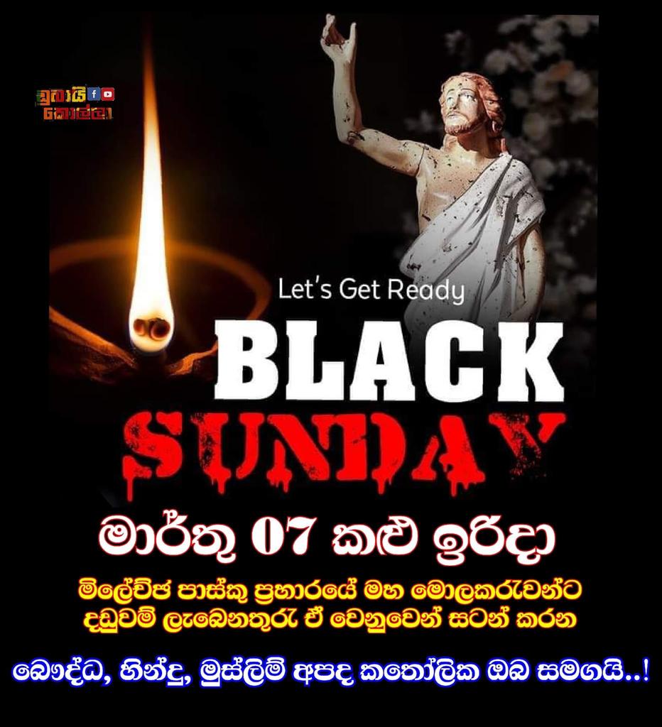 இந்த உண்மையை நாட்டு மக்கள் தற்போது புரிந்து கொண்டுள்ளனர். அதனால் ஞாயிறு தற்கொலைக் குண்டுத் தாக்குதல் சூத்திரதாரிகளை சட்டத்திற்கு முன் கொண்டு வந்து தண்டனை வழங்குமாறு வலியுறுத்தி எதிர்வரும் மார்ச் 7ம் திகதி ஞாயிறு தினத்தன்று நாடு முழுவதும் 'கருப்பு ஞாயிறு' என்ற பெயரில் எதிர்ப்பு நடவடிக்கைகள் பலவற்றை முன்னெடுக்க ஏற்பாடு செய்யப்பட்டுள்ளது. கிறிஸ்தவ தேவாலயம், இந்து கோவில், முஸ்லிம் பள்ளி மற்றும் பௌத்த விகாரைகளின் முன் இந்த கருப்பு ஞாயிறு கவனயீர்ப்பு போராட்டம் முன்னெடுக்கப்பட உள்ளது. இலங்கை வரலாற்றில் அனைத்து மதங்களுக்கும் ஒன்று சேர்ந்து முன்னெடுக்கும் கவனயீர்ப்பு போராட்டமாக இது பதியப்படவுள்ளது.