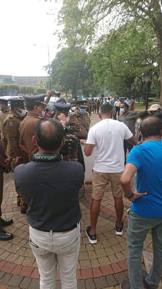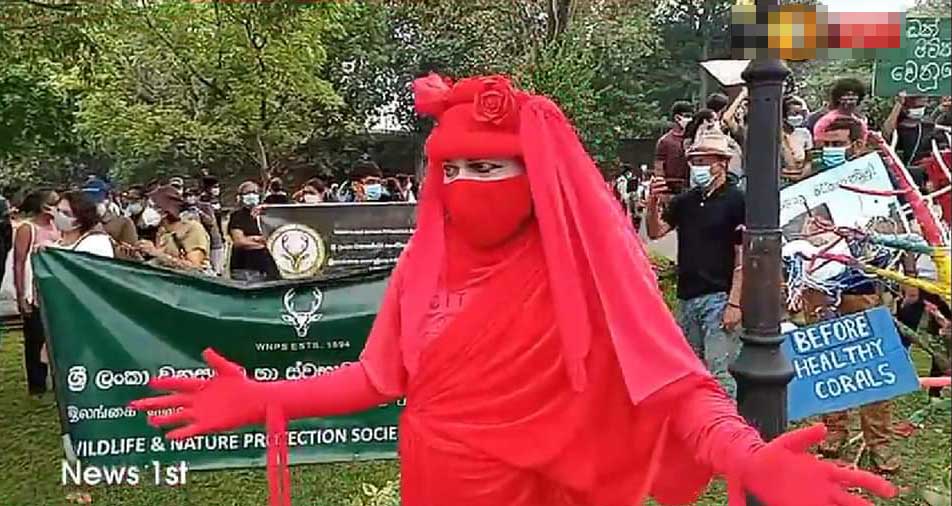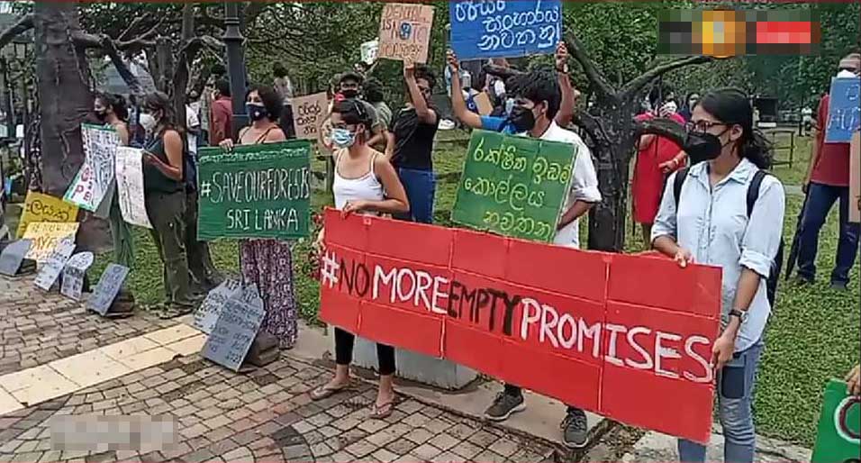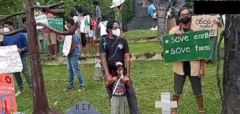 (லங்கா ஈ நியூஸ் - 2021 , மார்ச் 19, பிற்பகல் 05.35) இயற்கை படுகொலை நிறுத்து என்ற தமது கவனயீர்ப்பு சித்திர பாதாதைக்கு இடமளிக்க மறுத்த மிரிஹான நந்தவின் (ஜனாதிபதி நந்தசேன கோட்டாபய ராஜபக்ஷவின்) அரசாங்கம் குறித்த சித்தர பாதாதையை பொலிஸ் நிலையத்திற்கு எடுத்துச் செல்ல முயற்சி செய்தது. அதற்கு கடும் எதிர்ப்பு வௌியிட்ட இளைஞர் யுவதிகள் கவனயீர்ப்பு சித்திர பதாதை மேல் நின்று எதிர்ப்பு தெரிவித்தனர். அதில் அபூர்வமான பாதாதை ஒன்றை காட்சிப் படுத்தி இருந்தனர். " ஆம் ஒக்சிஜன் திண்பதற்குத் தான்.. " என்பதே அந்த பாதாதை. சுற்றாடல் மீது அன்பு செலுத்தும் இளைய சந்ததியினருக்கு எதிராக அவர்களை அடக்கி ஒடுக்க பொலிஸாரை அழைத்து அடக்குமுறையை கட்டவிழ்த்து விட்ட கேவலமான, கேடுகெட்ட, மோசமான, காட்டுமிராண்டி தன அரசாங்கத்தை உலகில் வேறு எங்கும் கண்டதில்லை.
