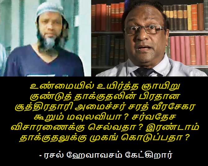 இவ்வாறு இருக்கையில் நவுபர் மவுலவியை பிரதான சூத்திரதாரியாக அவசரமாக அமைச்சர் சரத் வீரசேகர ' தெரிவு செய்தது' எந்த சாட்சியை அடிப்படையாகக் கொண்டு ..?