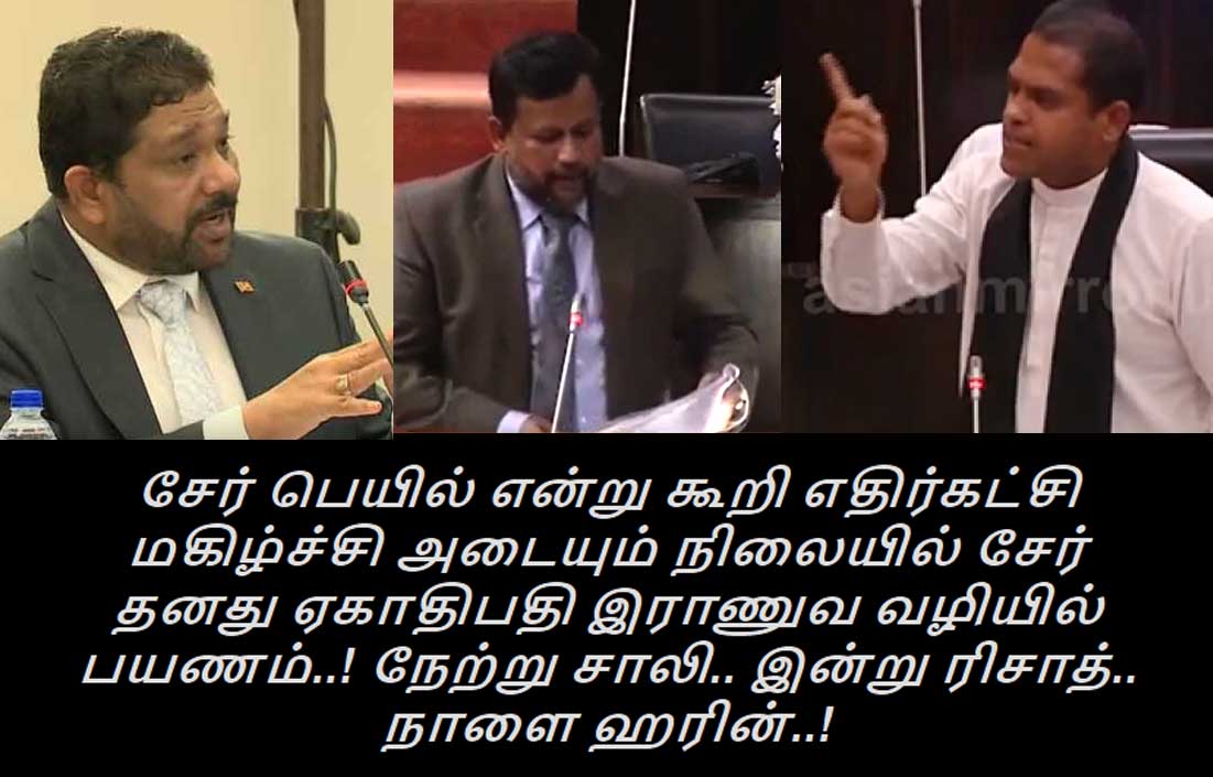 சேர் பெயில் என்று கூறி எதிர்கட்சி மகிழ்ச்சியில் இருக்கும் நிலையில் சேர் தற்போது நிலையான ஏகாதிபதி இராணுவ ஆட்சியை நோக்கி பயணித்துக் கொண்டிருக்கிறார் என்பது தௌிவாக தெரிகிறது. பாராளுமன்றில் வரப்பிரசாதம் பெற்று அரசாங்கத்தின் செயற்பாடுகளை விமர்சனம் செய்யும் பொது மக்கள் பிரதிநிதிகளான பாராளுமன்ற உறுப்பினர்களை கைது செய்து முன்னெடுக்கப்படும் அடக்குமுறையை சிறிதாக கருதி விட முடியாது. சர்ச்சைக்குரிய கருத்துக்களை பாராளுமன்றில் கூறிய பின் ரிசாத் பதியூதினை அதிகாலை வேளையில் வீட்டிற்குச் சென்று எவ்வித காரணங்களும் இன்றி கைது செய்து பயங்கரவாத தடை சட்டத்தின் கீழ் தடுத்து வைத்துள்ளமை மிகவும் மோசமான செயலாகும்.