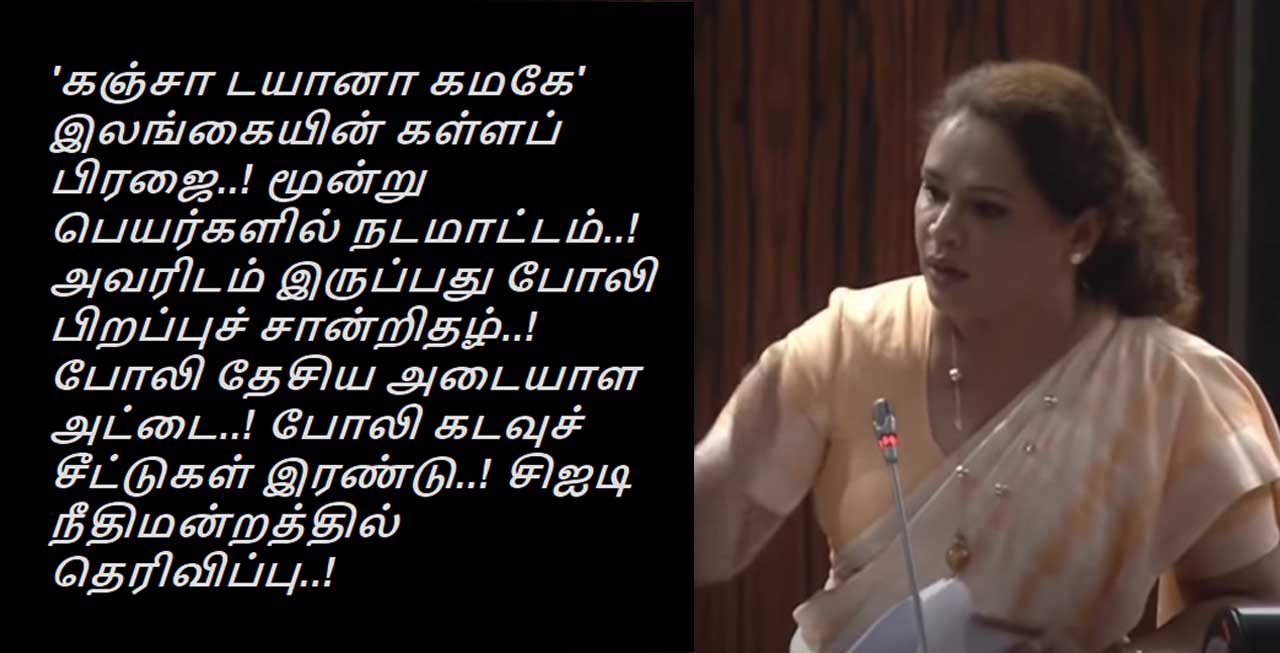 (லங்கா ஈ நியூஸ் - 2021, ஏப்ரல் , 28, பிற்பகல் 11.45) ஐக்கிய மக்கள் சக்தி கட்சியின் தேசியப் பட்டியல் மூலம் பாராளுமன்ற உறுப்பினராக தெரிவாகி 20வது திருத்தச் சட்டத்திற்கு ஆதரவு அளித்து அரசாங்கத்தின் பக்கம் கட்சித் தாவிய டயானா கமகே என்ற 'கஞ்சா டயானா' வெறுமனே பிரித்தானிய குடியுரிமை கொண்டவர் மாத்திரமே எனவும் அவருக்கு இரட்டை குடியுரிமை இல்லை என்பது மாத்திரமன்றி போலி தேசிய அடையாள அட்டை, போலிப் பிறப்புச் சான்றிதழ் என்பவற்றை முன்வைத்தே இலங்கையில் கடவுச் சீட்டு பெற்றுள்ளதாகவும் இவர் மூன்று வெவ்வேறு பெயர்களில் நடமாடி உள்ளதாகவும் குற்ற விசாரணை பிரிவினர் நீதிமன்றத்திற்கு அறிக்கை சமர்பித்துள்ளனர். தேசிய பட்டியல் பாராளுமன்ற உறுப்பினர் டயானா கமகே பிரித்தானிய குடியுரிமை கொண்டவர் என்ற தகவலை முதல் முறையாக 2020, ஒக்டோபர் மாதம் 25ம் திகதி லங்கா ஈ நியூஸ் ஊடாக இந்த செய்தியை எழுதும் கட்டுரையாளர் வௌியிட்டார்.