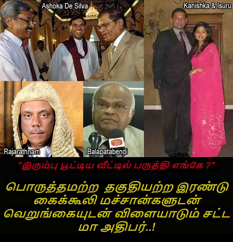 எவ்வாறாயினும், நாம் முன்னைய செய்திக்கு சென்றால் இன்று அசோக டி சில்வாவின் மகள் கனிஷ்கா டி சில்வாவை சட்டத்தை சட்டவிரோதமாக்கி சட்டமா அதிபர் திணைக்களத்தின் பிரதி சொலிசிட்டர் ஜெனரலாக நியமிக்க முயற்சிகள் முன்னெடுத்து வரப்படுகிறது.