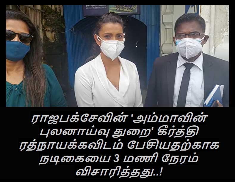 (லங்கா ஈ நியூஸ் - 2021. அக் . 04 , பிற்பகல் 11.20 ) லங்கா ஈ நியூஸ் இணையத்தின் பாதுகாப்பு மற்றும் அரசியல் ஆய்வாளர் கீர்த்தி ரத்நாயக்க பயங்கரவாதத் தடைச் சட்டத்தின் கீழ் கைது செய்யப்பட்டு தற்போது எவ்வித குற்றச்சாட்டுக்களும் இல்லாமல் சுமார் 50 நாட்களுக்கு மேல் தடுத்து வைக்கப்பட்டுள்ளார். இந்நிலையில் இராஜாங்க அமைச்சர் லோஹான் ரத்வத்தையுடன் அநுராதபுரம் சிறைக்கு தூக்கு மேடை பார்க்கச் சென்ற மற்றும் திருமதி இலங்கை அழகி போட்டியில் வெற்றி பெற்ற புஷ்பிகா டி சில்வாவின் கிரீடம் அகற்றப்பட்ட விவகாரம் குறித்து விசாரணை செய்யப்பட்ட நடிகை சூலா பத்மேந்திர, ஊடகவியலாளர் கீர்த்தி ரத்நாயக்கவுடன் உரையாடியதாகவும் அவருடன் தொடர்பில் இருந்ததாகவும் தெரிவித்து ராஜபக்சேவின் ' அம்மாவின் விசாரணை பிரிவாக ' இருக்கும் குற்றப் புலனாய்வு பிரிவிற்கு ( சிஐடி ) விசாரணைக்கு அழைக்கப்பட்டார்.