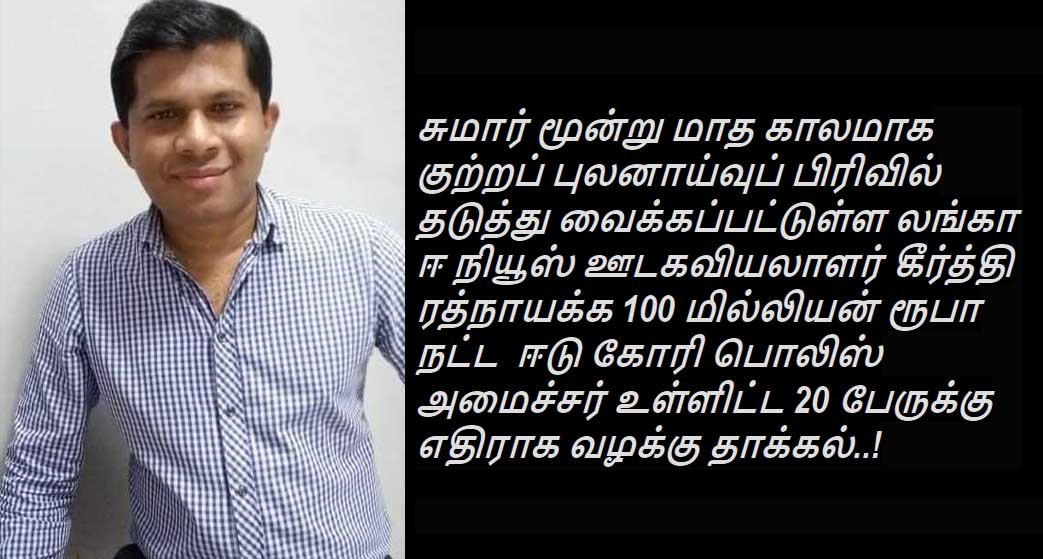 ( லங்கா ஈ நியூஸ் - 2021, நவம்பர், 10 பிற்பகல் 08.00 ) " நீ நன்கு தெரிந்து கொள். நீ இருப்பது இப்போது எங்களுடைய வீட்டில். எங்களது வீட்டில் எங்களுக்கு தேவையானது போன்று தான் வழக்குகள் தீர்க்கப்படும் " என கைது செய்யப்படும் போது பொலிசார் தன்னை அச்சுறுத்தியதாக கூறியும் பொலிஸ் துறைக்குப் பொறுப்பான அமைச்சர் சரத் வீரசேகர மற்றும் மேல் மாகாணத்திற்கு பொறுப்பான சிரேஷ்ட பிரதி பொலிஸ் மா அதிபர் தேசபந்து தென்னகோன் ஆகியோர் தொடர்பில் லங்கா ஈ நியூஸ் இணையத்தில் தான் எழுதி வெளியிட்ட கட்டுரை தொடர்பிலான செய்தி மூலங்களை கோரி தன்னை பயமுறுத்தி வருவதாகவும் சுமார் மூன்று மாதங்களாக பயங்கரவாத தடைச் சட்டத்தின் கீழ் கைது செய்யப்பட்டு குற்ற விசாரணைப் பிரிவில் தடுத்து வைக்கப்பட்டுள்ள லங்கா ஈ நியூஸ் ஊடகவியலாளர் கீர்த்தி ரத்னாயக்க தனது சட்டத்தரணிகள் ஊடாக கொழும்பு உயர் நீதிமன்றத்தில் இன்று நவம்பர் 10 ஆம் திகதி அடிப்படை உரிமை மீறல் மனு ஒன்றை தாக்கல் செய்துள்ளார்.