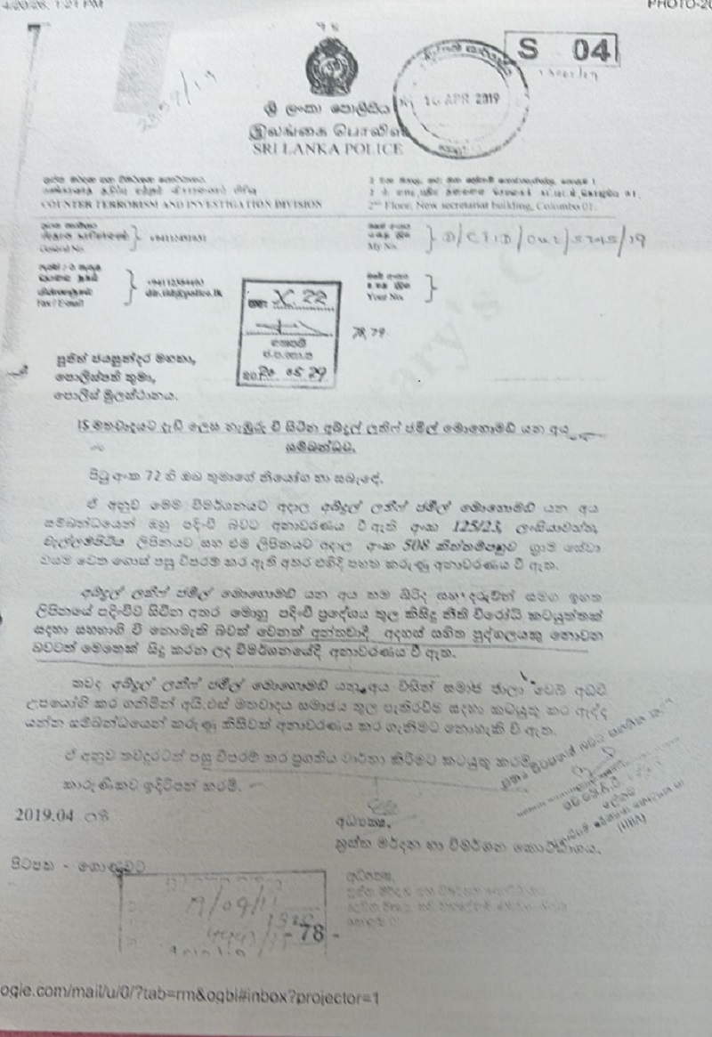 The letter sent by then-DIG Waruna Jayasundara on April 8, 2019 (just two weeks before the attacks), is a well-documented point of contention. (Letter Attached here)