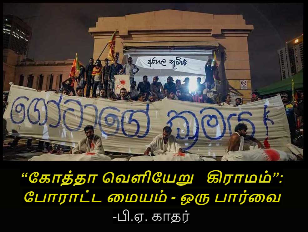 கோத்தா வெளியேறு கிராமம் இதுவரை வேறு எந்த அரசியல் கட்சியும் தலைவரும் செய்யாத காரியத்தை செய்துள்ளது, அவற்றுள் நான்கு பிரதானமானவை: ஒன்று, இலங்கை வரலாற்றில் முதல் தடவையாக சிங்கள பெளத்த பேரின வெறியை பின்தள்ளி இலங்கை என்பது சிங்களவர்களுக்கு மாத்திரமல்ல முழுமக்களுக்கும் அது சொந்தமானது என்ற சித்தாந்த்தை முன்னிறுத்தியுள்ளது. இது தற்கா லிகமானதாக இருக்கலாம் ஆனால் இந்த உடைவு முக்கியமானது. இது ஒரு நல்ல ஆரம்பம். இதுவரை பெருந்தேசியவாதத்தின் முன்னால் அடிமை -அமைதிகாத்தவர்கள் கூட இனி துணிந்து இந்த புதிய சித்தாந்தத்தை முன்னெடுக்கமுடியும். இரண்டாவது, இதுவரை ஆட்சிக்கு வந்த ஒவ்வொரு அரசாங்கமும் மக்கள் ஆதரவால் பதவிக்கு வரவில்லை, மாறாக ஆட்சியில் இருக்கும் அசாங்கத்தின் மீதுள்ள அதிருப்தியை பயன்படுத்தி பொய்யான வாக்குறுதிகளை வழங்கியும் இன முரண்பாடுகளை பயன்படுத்தியுமே ஆட்சியை கைப்பற்றின. முதற்தடவையாக ஒரு பொருளாதார வேலைத்திட்டத்தையும் அரசியல் சீர்திருத்தத்தத்தையும் முன்வைத்தே எந்த கட்சியும் ஆட்சிக்கு வரவேண்டிய நிர்ப்பந்த சூழலை ஏற்படுத்தி யுள்ளது. மூன்று, ஆங்காங்கே பசளை கோரியும் பால்மா கோரியும் பெட்ரோல் கோரியும் நடைப்பெற்ற பொருளாதார போராட்டங்களுக்கு ஓரூ அரசியல் அடிப்படையை கொடுத்து அனைத்து சக்திகளையும் ‘கோத்தா வெளியேறு’ என்ற கோசத்தின் கீழ் ஒன்றிணைத்து அதனை நாடு தழுவிய கோஷமாக மாற்றியது. நான்காவதாக, வன்முறையற்ற அமைதி வழி போராட்டமே தமது பாதை என்பதில் உறுதியாக நிற்பதால் மத்திய தர வர்க்கத்தையும் இணைக்க முடிந்தது, அரசின் சதி முயற்சிகளை அம்பலப்படுத்த முடிந்தது, சர்வதேச அங்கீகாரத்தையும் பெற முடிந்தது.
