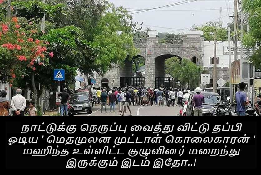( லங்கா ஈ நியூஸ் - 2022 , மே , 11 காலை 07.35 ) கடந்த மே மாதம் 9 ஆம் திகதி நாட்டில் வெடித்த கொடூரமான வன் முறைகளைத் திட்டமிட்டு, சதி செய்து வழி நடத்திய முன்னாள் பிரதமர் மகிந்த ராஜபக்ச என்று அழைக்கப்படும் ' மெதமுலனே முட்டாள் கொலைகாரன் ' மற்றும் அவரது குடும்ப உறுப்பினர்கள் மேலும் சதித் திட்டத்தை திட்டமிட்ட கும்பல் தற்போது இந்த கட்டுரை எழுதப்படும் இன்றைய 11 ஆம் திகதி இந்த நேரத்தில் திருகோணமலை கடற் படைத் தளப் பகுதித் தளபதியின் வலயமான டொகியாட்டில் அமைந்து உள்ள ' பில்லோ ஹவுஸ் ' (Pillow House) என்ற பங்களாவில் தங்கி உள்ளதாக ' லங்கா ஈ நியூஸ் கடற் படை உள்ளக தகவல் சேவையில் ' இருந்து உறுதி செய்யப்பட்ட செய்தி வந்துள்ளது.