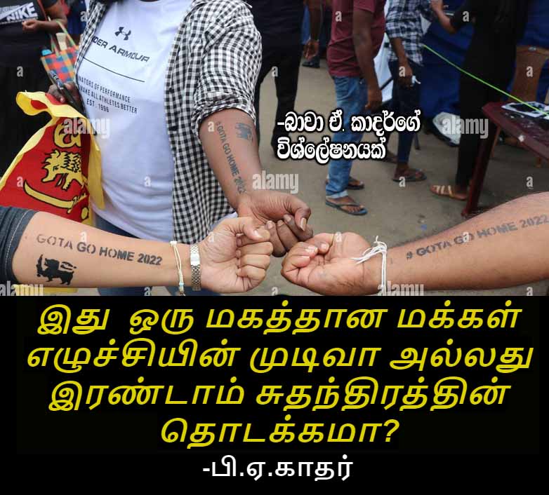 இவர்களின் இந்த கூட்டு சதியை முறியடிப்பதற்கு மக்கள் ஒன்றுபடவேண்டிய தருணமிது. ஊசலாட்டங்களுக்கு இடம் கொடாமல் உறுதியாக நின்றால் வெற்றி நிச்சயம். 1948ல் ஆங்கிலேயர்களிடம் இருந்து போராடாமல், ஒரு துளி ரத்தம் சிந்தாமல் சுதந்திரம் பெற்றோம். ஆனால் நாம் இப்போது நடத்துவது அதிகார வெறி பிடித்த எமது சுதேச ஆட்சியாளர்களுக்கு எதிரான இரண்டாவது சுதந்திர போராட்டம். அது அத்தனை சுலபமானதல்ல. ஆனால் முடியாததல்ல.